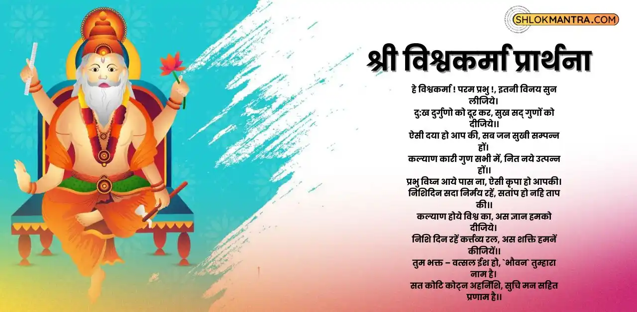 श्री विश्वकर्मा प्रार्थना हे विश्वकर्मा ! परम प्रभु !, इतनी विनय सुन लीजिये। दु:ख दुर्गुणो को दूर कर, सुख सद् गुणों को दीजिये।। ऐसी दया हो आप की, सब जन ....