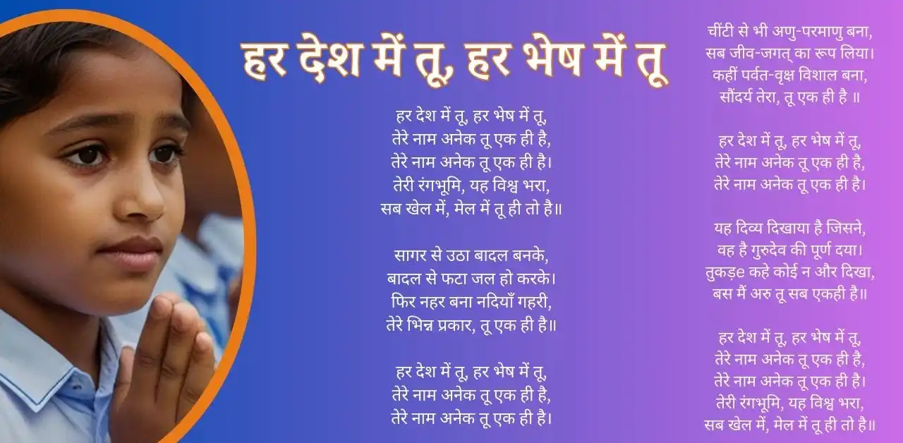 प्रार्थना: हर देश में तू, हर भेष में तू – यह प्रार्थना भारतीय संस्कृति और परंपराओं से प्रेरित है और विभिन्न धर्मों के मूल्यों को समेटती है। यह प्रार्थना ईश्वर ....