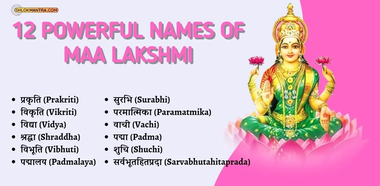 12 Powerful Names of Lakshmi: देवी लक्ष्मी हिंदू धर्म में एक महत्वपूर्ण देवी हैं, जो धन, समृद्धि और शुभता के आशीर्वाद के लिए जानी जाती हैं। माता-पिता अक्सर अपनी बच्चियों ....